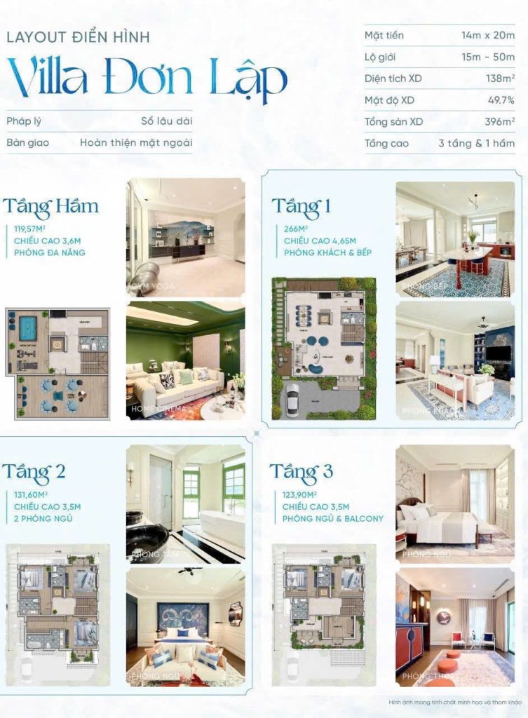 Casa Villa Đơn Lập Blanca City: ba tầng + một hầm, diện tích lên đến 280 m² – là lãnh địa riêng tư tuyệt đối giữa đô thị ven biển.